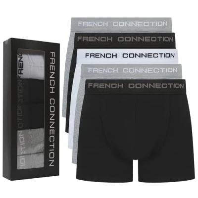 French Connection 'FC91' Mens Multipack Boxer Shorts - Cotton Stretch, 5 Pack, Soft and Breathable Underwear (XX-Large)