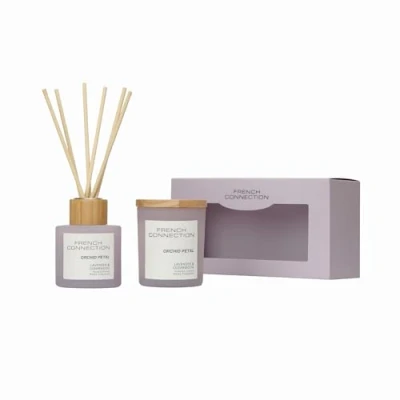 French Connection Pastel Collection Scented Reed Diffuser & Candle Gift Set Luxury Home Fragrance (Set 100ML 141G, Lavender Cedarwood)