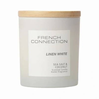 French Connection Pastel Range Scented Candle Shea Butter Wax White Glass Jar Bamboo Lid Round Shape (Medium, Sea Salt & Coconut)
