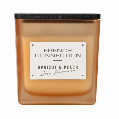 French Connection Scented Candle Shea Butter Wax Frosted Orange Glass Jar Wooden Lid Square Shape (Medium, Apricot Glow (Apricot & Peach) Scent