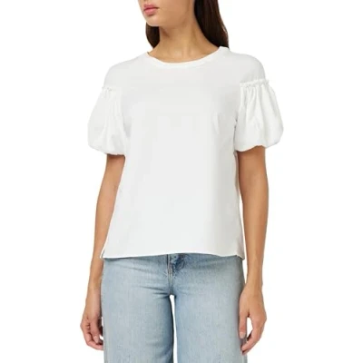 French Connection Women's Crepe Light Puff Sleeve TOP Blouse, Summer White, L