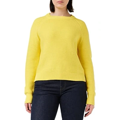 French Connection Women's Lily Mozart Long Sleeve Crew Neck Jumper Pullover Sweater, Primrose Yellow, L