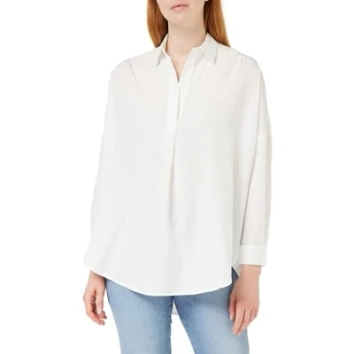 French Connection Women's Rhodes Recycled Crepe Popover Button Down Shirt, Winter White, XS
