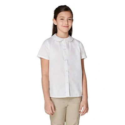 French Toast Girls' Short Sleeve Peter Pan Collar Blouse (Standard & Plus), White, 10