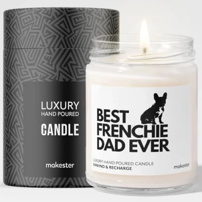Frenchie Gifts for Men Luxury Soy Wax Vanilla, Jasmine, Sugared Almond Makester