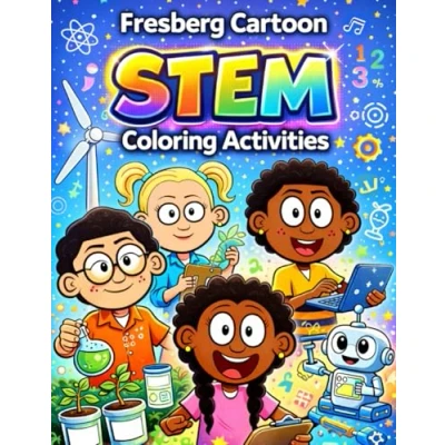Fresberg Cartoon STEM Coloring Book: Fun Science, Math, Engineering & Technology Pages for Curious Kids