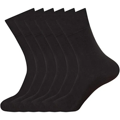 Fresh Feel K11 L10576 Black 6 Pairs Non Elastic Diabetic Ladies Socks Girls Womens Easy Grip Loose Soft Top Rich Cotton One Size UK 4 7