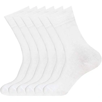 Fresh Feel K11 L10576 White 6 Pairs Non Elastic Diabetic Ladies Socks Girls Womens Easy Grip Loose Soft Top Rich Cotton One Size UK 4 7