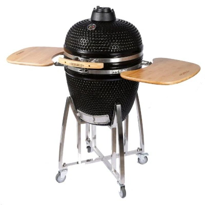 General description Transform your outdoor cooking with our 21-inch Kamado BBQ, designed to deliver exceptional flavor and unparalleled versatility. With its iconic egg-shaped ceramic shell, this BBQ is perfect for grilling, searing, slow cooking, roasting, baking, and cold smoking. Offering temperatures from 10°C to over 400°C, it adapts to a variety of fuels such as wood chips, chunks, pellets, or charcoal. Whether you're a seasoned chef or a weekend grilling enthusiast, this BBQ allows you to explore a multitude of culinary techniques. Designed for practicality and durability, our Kamado features ergonomic bamboo handles for a secure and comfortable grip, even at high temperatures. The strategically placed built-in thermometer makes it easy to check the temperature without opening the lid, helping to maintain consistent heat for perfect cooking results. Compact and practical, it's ideal for small outdoor spaces or camping trips, without sacrificing cooking space. Built to last, its