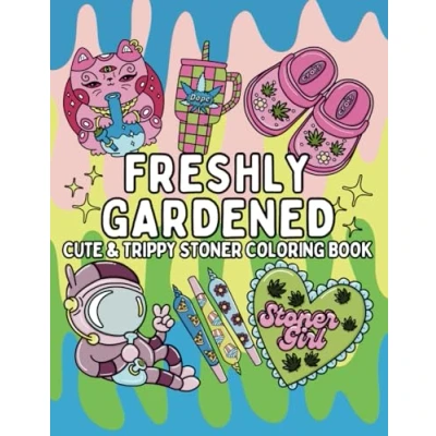 Freshly Gardened: Cute & Trippy Stoner Coloring Book: 52 Weed Themed Cannabis Designs (FULL SIZE)