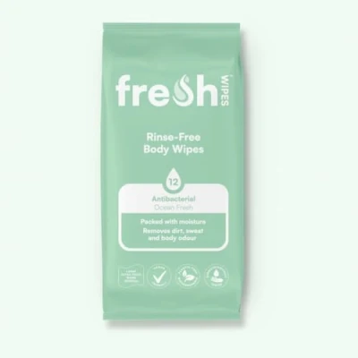 ANTIBACTERIAL BODY WIPES: These extra large adult wet wipes are a versatile hygiene companion that removes the bacteria that causes body odour and leaves you feeling refreshed. Formulated with Chlorhexidine, these wipes provide a clean and fresh feel for a wide range of situations. The gentle antibacterial qualities remove body odour effectively, this not only cleans you well but also protects you against any potential skin issues. EXTRA THICK & MOIST: Ideal for personal hygiene these wipes are twice as thick and ten times wetter than regular baby wipes making them brilliant cleansing wipes for individuals with limited mobility or those confined to bed. They are pH balanced and dermatologically tested for sensitive skin helping to prevent discomfort or irritation and ideal for elderly or disabled people and those recovering from surgery. They're also great to use when camping or at festivals where shower access is limited. BIODEGRADABLE & ENVIRONMENTALLY FRIENDLY: These premium wipes are gentle on skin yet tough on germs. They are crafted from sustainable plant fibers (viscose), are 100% biodegradable and break down naturally in soil. Not only do these plant-based wipes provide you with clean skin, they also align with sustainable practices. FRESH FEELING & SCENTED: FreshWipes body wipes not only ensure you are left shower clean but are also infused with a refreshing ocean breeze fragrance, perfect for both men and women, to leave you feeling fresh and revitalised. Due to the extra large size, one high quality wipe is large enough and wet enough to clean an adult's body easily without tearing. CONVENIENT & RESEALABLE SINGLE PACK: This pack of FreshWipes body wipes contains 12 thick, extra-large wipes, perfect for your daily hygiene needs - at home or on-the-go. Each cleansing wet wipe is 12" x 8" or 30cm x 20cm, meaning just one wipe is enough for your whole body! Twice as thick and ten times wetter than regular baby wipes, these wipes are the solution you've been looking for when showering isn't an option.