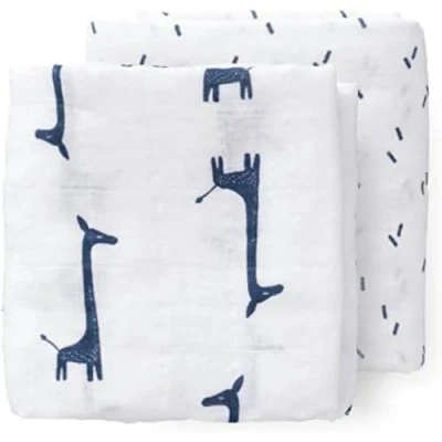 FRESK Bedroom Unisex children’s bedroom wrap-around blankets. Set of 2 pieces, 120 x 120 cm, blue indigo giraf