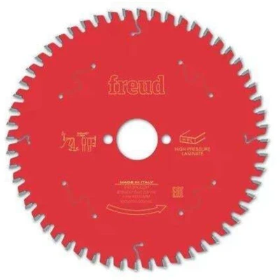 General description Freud High Pressure Laminate Saw Blade is designed specifically for handheld saws, making it ideal for cutting high pressure laminate and Corian. With its advanced features, this blade ensures a flawless finish and a significantly longer cutting life. Technical specifications Blade Diameter: 190 mm Cutting Width: 2.6 mm Disc Bore Size: 30 mm Number of Teeth: 56 Other information Freud's Titanium Cobalt Carbide (TiCo) teeth provide superior cutting performance. The Perma shield coating technology offers enhanced protection and durability. Special tri-metal shock resistant brazing alloy consists of copper wrapped between silver layers to withstand extreme impact. Standard Equipment: 1x Freud High Pressure Laminate Saw Blade 190mm x 30mm 56T