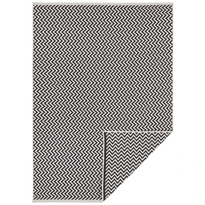 freundin Home Collection Nora Indoor & Outdoor Rug Reversible Weatherproof Modern Design for Balcony, Patio, Conservatory, Bath Mat, Living Room Rug, Black, Cream, 80 x 250 cm