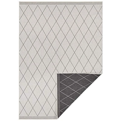 freundin Home Collection Nora Indoor & Outdoor Rug Reversible Weatherproof Modern Design for Balcony, Patio, Conservatory, Bath Mat, Living Room Rug, Black, Cream, 80 x 250 cm