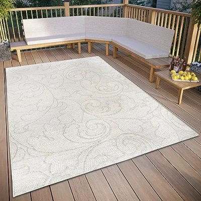 freundin Home Collection Palau Indoor & Outdoor Rug Floral Flat Weave Leaf Pattern, Weatherproof UV Resistant for Living Room, Hallway, Balcony, Patio, Garden Cream, 77 x 150 cm