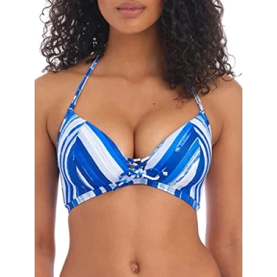 A softened look to the traditional triangle bikini top is brought to you from the Bali Bay collection by Freya The cups are lightly padded to create a forward projection and security within the piece But the padding still ensures a lightweight fit, which is especially perfect when wet The hand painted print creates a bold and vivid style Without the need for underwiring a rounded shape is created by the piece