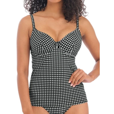 Freya Womens Check In Plunge Tankini Top Black Nylon Size 32GG