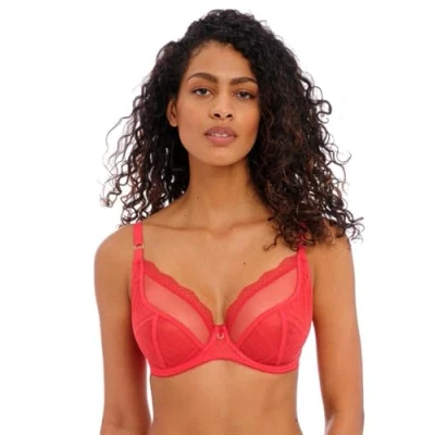 Freya Women's Fatale Underwire Plunge Bra, Sheer, Chilli Red, 32DD