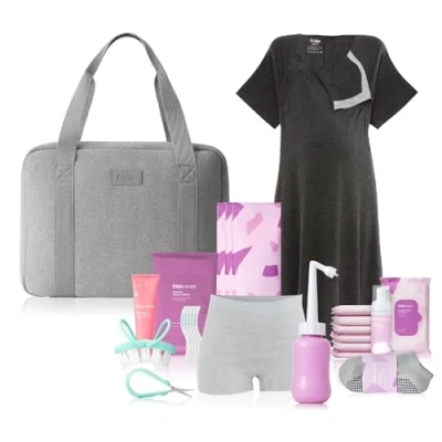 COMPLETE HOSPITAL BAG CHECKLIST FOR LABOR TO NEWBORN CARE: The ultimate pre-packed maternity bag containing essentials for three critical phases: labor & delivery, postpartum recovery, and newborn care. Skip the stress of forgotten items with this comprehensive birth preparation kit. ESSENTIAL POSTPARTUM RECOVERY KIT: Healing collection includes specialized perineal care (Upside Down Peri Bottle, Witch Hazel Pad Liners, Perineal Healing Foam), postpartum bleeding management (Disposable Underwear, Ice Maxi Pads, Regular Postpartum Pads), plus Nipple Balm for breastfeeding comfort and Body Wipes for freshness. NEWBORN CARE ESSENTIALS: Baby's first grooming kit features Frida Baby Nail Scissors, safety Nail Files, and specially designed Head-Hugging Hairbrush with Styling Comb - essential tools new parents need during those critical first weeks. PRE-ORGANIZED MATERNITY HOSPITAL BAG: Strategically compartmentalized design ensures immediate access to labor support items, followed by postpartum recovery necessities, saving precious time and reducing stress during birth. The ultimate prepared mom solution. MULTI-FUNCTIONAL DIAPER BAG & PUMP BAG TRANSITION: Unlike single-use hospital bags, this versatile maternity tote transitions seamlessly to daily life with removable toiletry organizers, specialized storage pockets, and convenient suitcase attachment strap - perfectly designed for the modern mom's lifestyle beyond the birthing center.