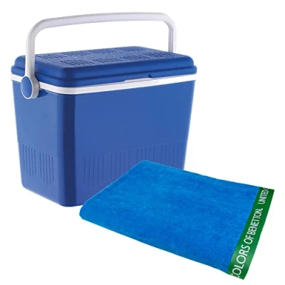 Rigid cooler, ideal for transporting your drinks and food and keeping them fresh for longer Capacity: 42 litres; with molded polypropylene housing with airtight seal and ergonomic handle for carrying Width x Depth x Height: 55x35x40cm Join yourself with this beach towel 90x160 cm 380gsm velour 100%cotton blue casa benetton Size: 90 x 160 cm