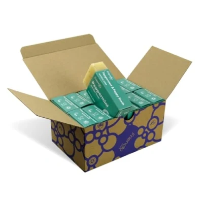 12 Bar Box: Save money and reduce your carbon footprint with this fantastic 12 bar box. Perfect for stocking up on your Friendly favourites Peppermint Soap Bar: Experience a super-fresh feeling with this top-quality bar. Exfoliating poppy seeds add an extra level of liveliness Eco-Friendly Packaging: Each bar is packed in recycled and recyclable card, and the outer shipper is plastic-free and fully recyclable Ethically Made: Always plant-based, cruelty-free, and handcrafted without preservatives or sulphates Handmade In The UK: Our natural soap bars are made by hand in the UK by our expert soap makers, paid a living wage