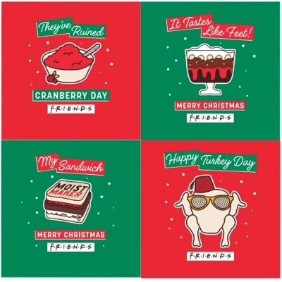 Celebrate the holidays with the Official Friends Christmas Card Pack, inspired by the beloved TV show. This pack comprises 20 uniquely designed cards, each capturing the camaraderie and humor of the Friends series. Featuring 4 distinct designs, these cards offer a delightful variety for your festive greetings. Crafted with a commitment to sustainability, the cards are made from FSC-certified paper. Envelopes are included The Official Friends Christmas Card Pack isn't just a collection of cards; it's a delightful way to enjoy Chrisrtmas with the spirit of friendship and laughter from the iconic show. With 20 cards featuring 4 unique designs, you're well-equipped to spread holiday joy and the memories of friends to your loved ones.