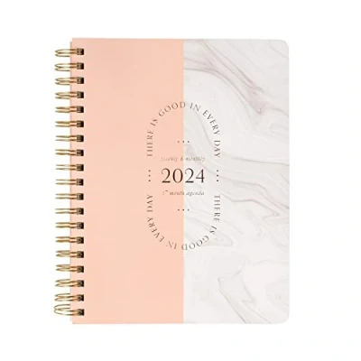 Fringe Studio Planificador semanal en espiral 2024, agosto 2023 a diciembre 17 meses, cubierta de papel, buen tinte mármol, 236 páginas, 9.7 x 6.7 pulgadas (844223)
