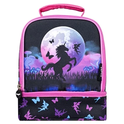 Fringoo Double Decker Lunch Bag Unicorn Moon Design for Kids with Compartment Unicorns Fully Insulated