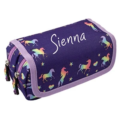 Fringoo Personalised Kids Pencil Case 2 Compartment Large Stationery Pouch School Accessories Organiser Funny Cute for Girls Boys (Unicorn)