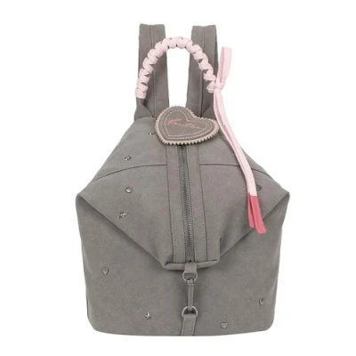 Small, vegan and limited edition backpack with zip in practical city format Decorative, scattered star rivets Cute, removable pendant in gingerbread heart design Individually adjustable shoulder straps for more comfort Everything is securely closed thanks to the zip