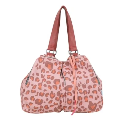 Fritzi Donny Shopper Leo Brick Canvas Handbag Women's Festival City Vegan Cotton Mix Leopard Print Braided Pendant Magnetic Closure 32 x 43 15 cm, Pink