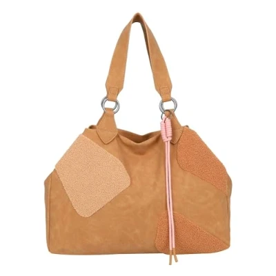 Fritzi Izzy Medium Limited Happy Flocked Shopper Faux Leather Women's Handbag Festival City Vegan Flock Details Cord Pendant 29 x 42 15 cm Brown Pink Green Beige, Soft chestnut,