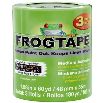 Frog Tape Multi Surface Masking for Painting 48mm x 55m, Decorators Tape, Painters Indoor & Decorating Pack of 3