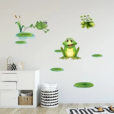 Frog Wall Sticker Set Kids Bedroom Decals Art (90cm Width x 60cm Height)