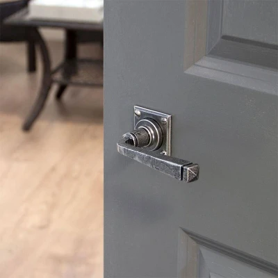 Traditional Blacksmith Avon Lever Door Handle on Rose Set - Sprung available at castinstyle.co.uk. These Avon lever door handles are made from hand-forged steel. They are a high quality product, with a pewter patina finish and hand forged using traditiona