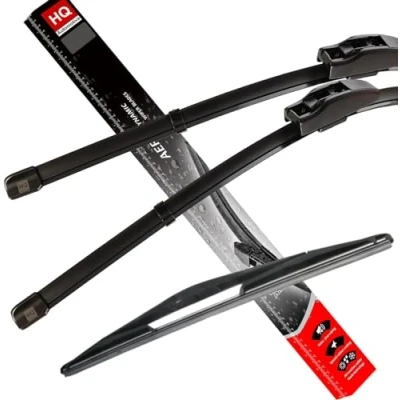 Flat Aero Wipers, UK Manufacturer, UK STOCK. Finest Quality 3pcs set, 2 front (driver + passenger) + 1 rear blade