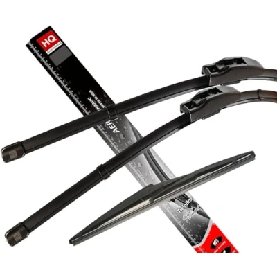 Flat Aero Wipers, UK Manufacturer, UK STOCK. Finest Quality 3pcs set, 2 front (driver + passenger) + 1 rear blade