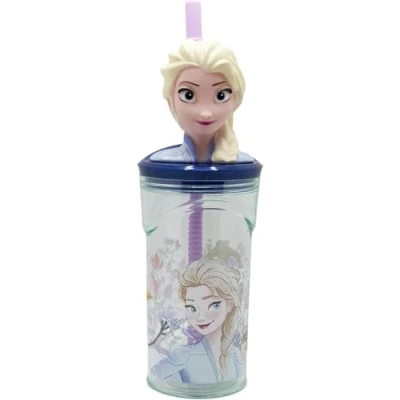 Frozen 3D Kids Tumbler with Lid and Straw 360ml Reusable BPA Free Plastic Cup Disney Princess Elsa Anna Drinkware Ideal for Lunchbox, Travel, Parties & Gifts