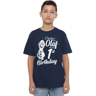Frozen Chillin Like Olaf 1stBirthday Unisex Kids T Shirt, Navy, 12 13 Years