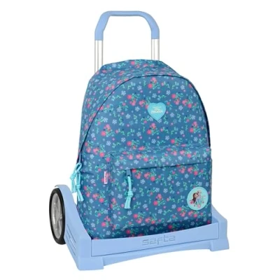 Guarantee and quality: Official Frozen school backpack with Safta Evolution trolley and 2 years warranty Padded accommodation for laptops up to 14.1''. Front zip pocket. Side bottle pocket. Double pull on main zipper for easy opening. Ergonomic and padded anti-sweat shoulder pads. Padded back. Hand handle on top. Removable backpack. Open dimensions: 85 cm high SPACIOUS & LIGHTWEIGHT: Padded accommodation for laptops up to 14.1". Large front pocket. Side bottle pockets Handles on the sliders for easy opening. Double pull on main zipper for easy opening. Open measurements: 85 cm high ERGONOMICS AND COMFORT: Padded back and shoulder pads, ergonomic, comfortable and adjustable. Hand handle on top. Safta clamping system Safta patented trolley design The quieter and less vibrating car, anti-chafing and anti-tipping. Polypropylene trolley, painted steel, 14 cm wheel rubber cover anti-vibration ultra quiet RESISTANCE AND DURABILITY: This product is specially designed with durability in mind, made with high strength materials to ensure that it can be used in all kinds of activities, ensuring its functionality