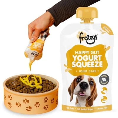 LICKABLE, SQUEEZABLE & FREEZABLE JOINT CARE TREAT: A fun, mess-free yogurt squeeze designed for daily joint support. Lick straight from the pouch, spread on lick mats, squeeze over food, or freeze for enrichment. Ideal for walks, training, or everyday functional feeding. TARGETED JOINT & MOBILITY SUPPORT: Made with chicken for high-quality protein, plus collagen and chondroitin to help support healthy joints and mobility. Turmeric provides additional joint-care benefits, making this a functional treat for active dogs and ageing companions. FERMENTED YOGURT WITH PREBIOTICS FOR GUT HEALTH: 90% lactose-free fermented yogurt combined with prebiotic fibre helps support digestion, nutrient absorption, and immune health. A dual-benefit treat that cares for joints while maintaining a healthy gut balance. LOW CALORIE, 0% FAT & GENTLE ON TUMMIES: With no added sugar and just 0.3% crude fat, this is a guilt-free daily treat suitable for dogs with sensitive stomachs or those on weight-managed diets. Delicious, nutritious, and easy to digest. SUITABLE FOR ALL DOGS FROM 12 WEEKS: Recommended daily feeding: small dogs (3kg) 60g, medium dogs (10kg) 115g, large dogs (>10kg) 230g. Resealable pouch keeps contents fresh and convenient at home or on the go. Refrigerate after opening/consume within 7 days.