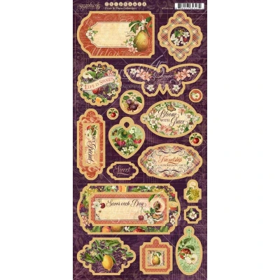 Fruit and Flora Chipboard Fruit & Flora An abundant harvest collection, full of imagery of fabulous fruit, botanical beauties and fragrant blossoms. Set on a dramatic rich plum backdrop with complementary hues of golden pear, sweet peach, cherry blossom pink, lush orchard green, and raspberry red. Fruit & Flora Chipboard Decorative embellishments Sturdy die-cut chipboard - finished Size is 6 x 12.5-Inch G45FR20 4502002 GR4502002 GR4502002 MPN 4502002