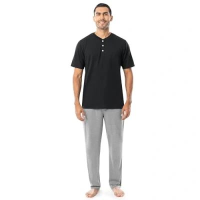 Fruit of the Loom Men's 2 Piece Jersey Knit Pajama Set, Black/Grey Heather, Medium