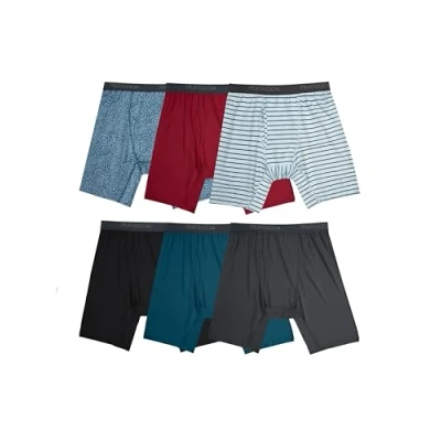 Fruit of the Loom Men's 4 Way Stretch Boxer Briefs Lightweight & Moisture Wicking Underwear, Regular Trunk, Long Leg 6 Pack Assorted Colors, S (Pack 6)