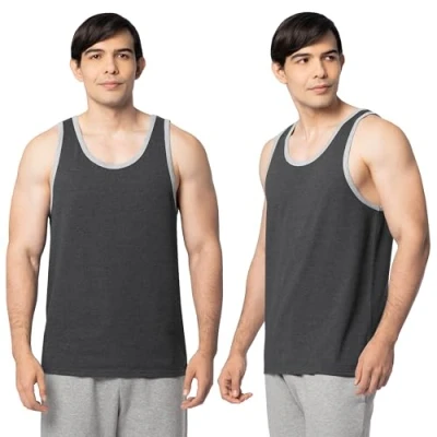 Fruit of the Loom Men's Eversoft Cotton Sleeveless T Shirts, Breathable & Moisture Wicking with Odor Control, Sizes S 4x Undershirt, Tank 2 Pack Black Heather, Medium (Pack 2)