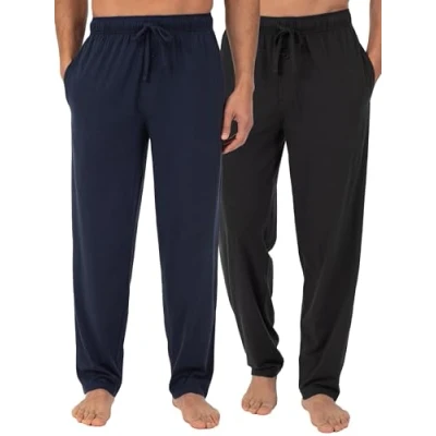Fruit of the Loom Men's Extended Sizes Jersey Knit Sleep Pajama Lounge Pant (1 & 2 Packs) Bottom, Black/Navy (2 Pack), Small (Pack 2)