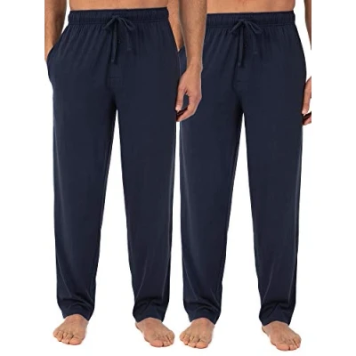 Fruit of the Loom Men's Extended Sizes Jersey Knit Sleep Pant Pajama Bottom, Navy/Navy (2 Pack), XL