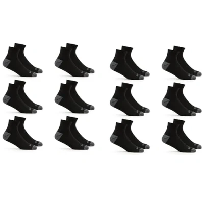 Fruit of the Loom Men's Half Cushion Dual Defense Ankle (12 Pack) Casual Sock, Black, M UK