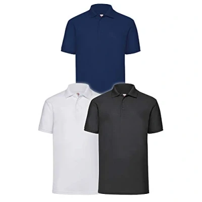 Fruit of the Loom Men's Polo Shirt (Pack 3), Multicoloured (White/Black/Navy), M